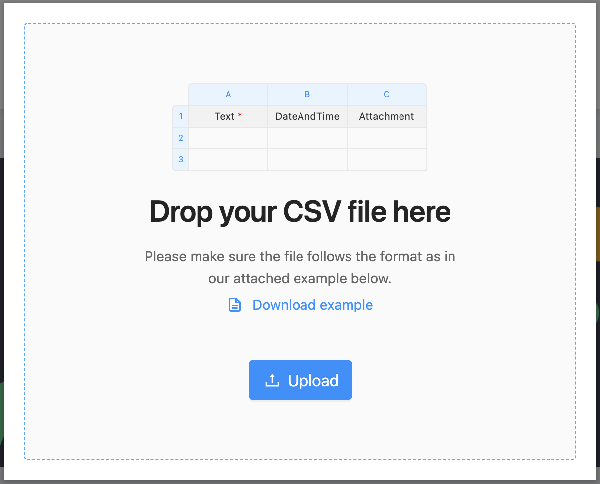 We support CSV files (comma separated values) that have a predefined format. You can download a sample file to see how to properly arrange your content before uploading it in Planable.