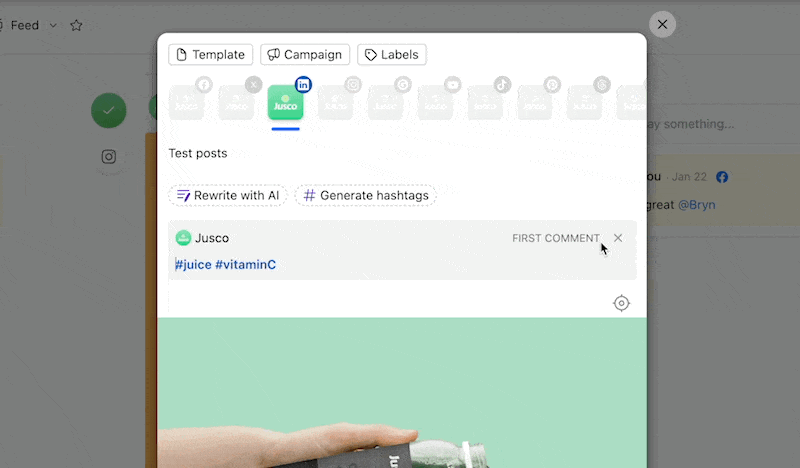If you had previously connected a Facebook, LinkedIn, or Instagram page (before this feature was available), make sure to reconnect your account before scheduling a post with a first comment.