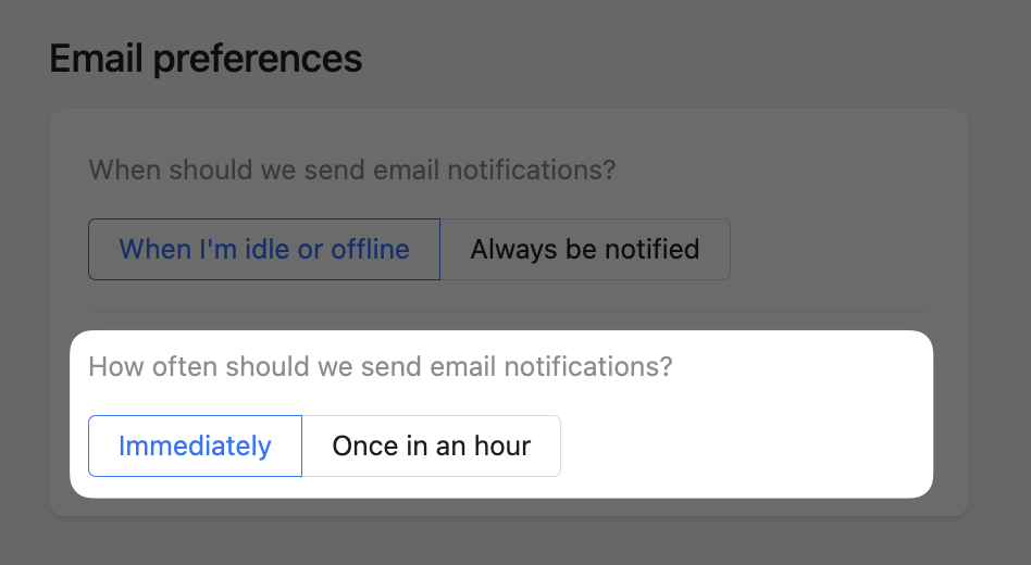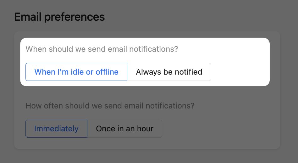 When I'm idle or offline: Only receive emails when you're not using the app.