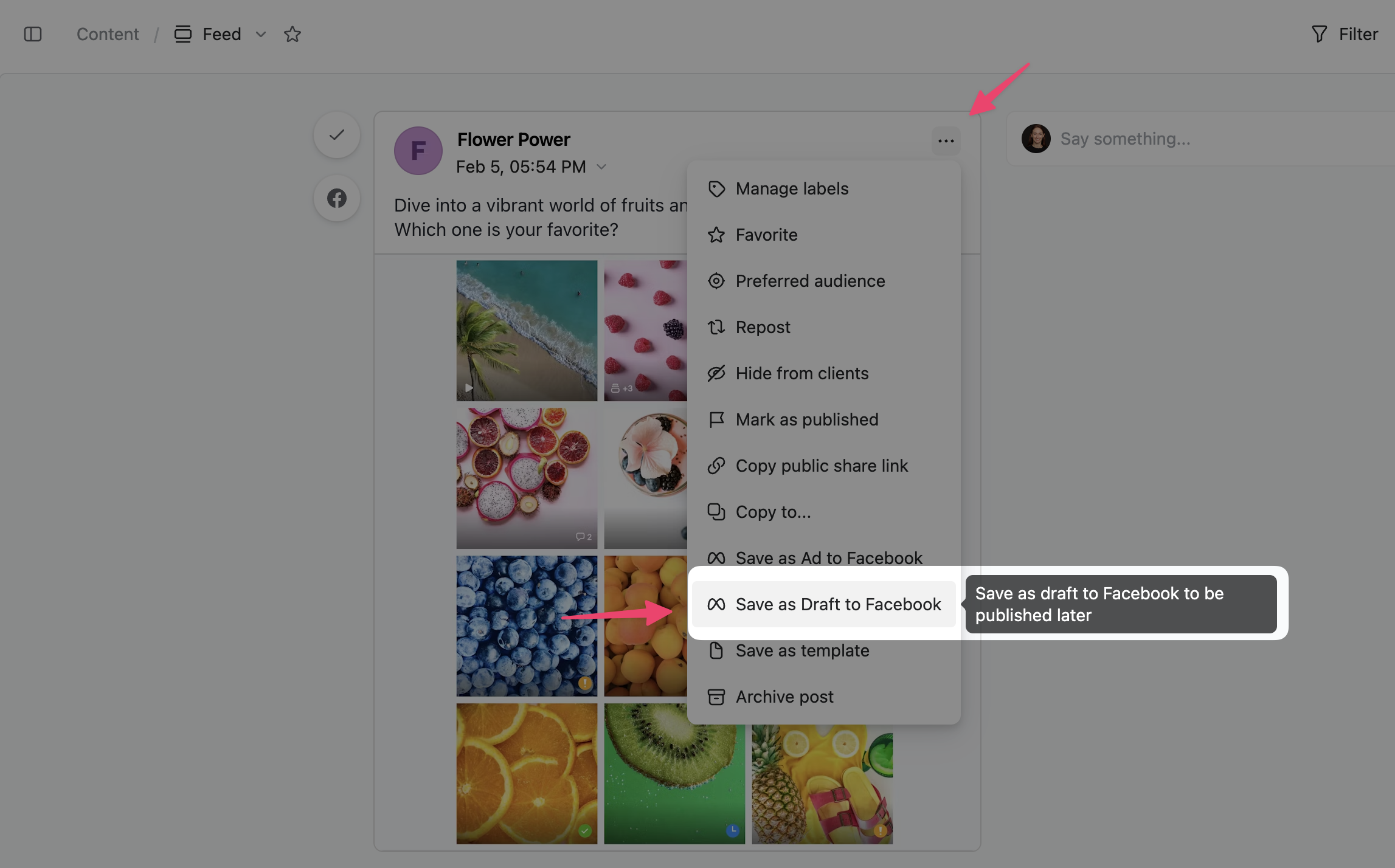 Find out how to save as draft to Facebook, if you're using alternative ways to schedule a post.
