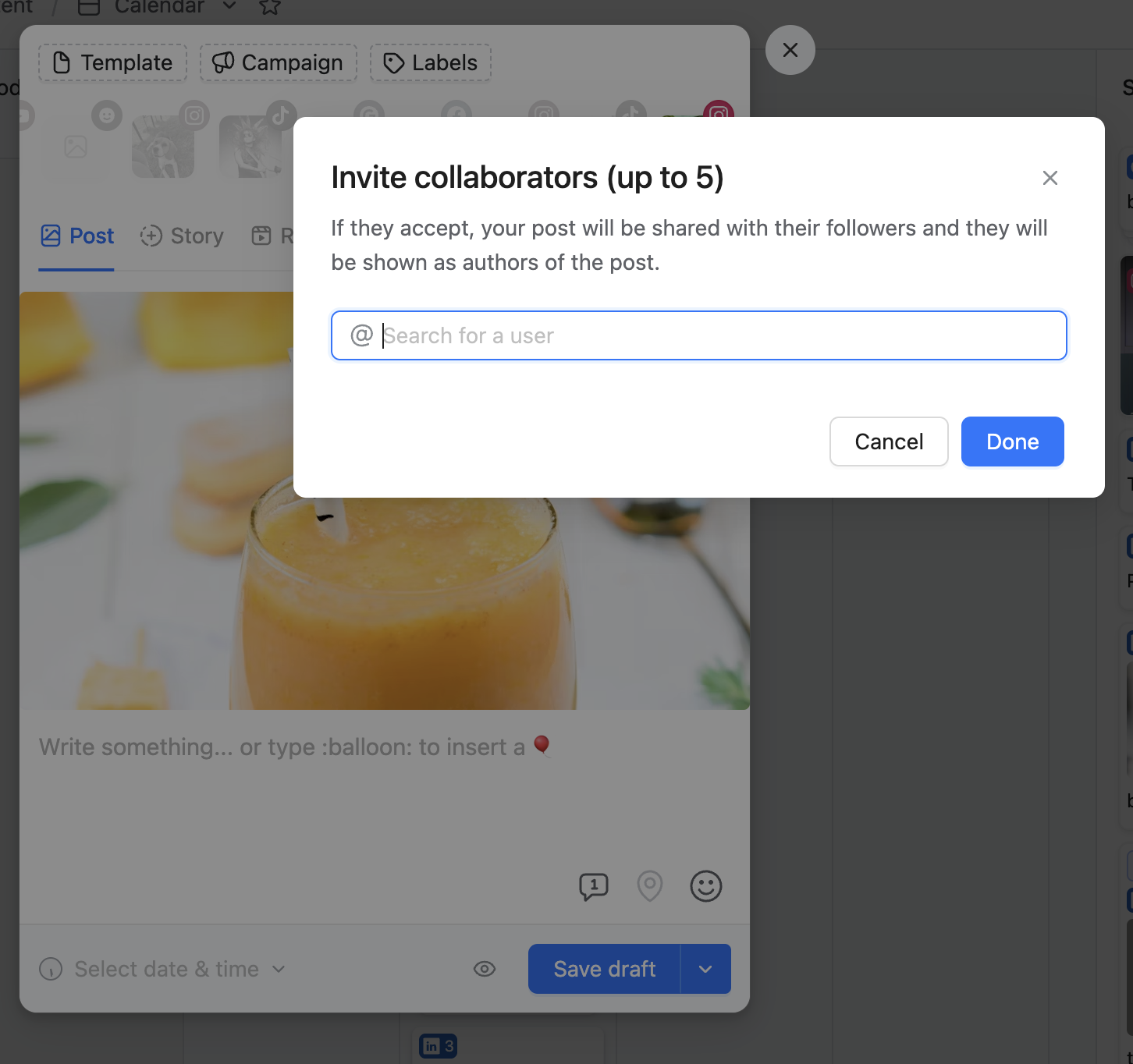 Note: Since the ownership of collaborative posts belongs to the original creator's profile, Planable can only sync content that's directly associated with your connected account. This means collaborative posts where you're tagged as a collaborator won't appear in your Planable workspace or analytics.
