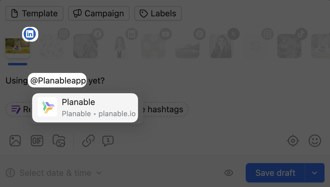 Tagging options are only available for Facebook, LinkedIn, and X (ex-Twitter) at this moment. We'll see both cases below.