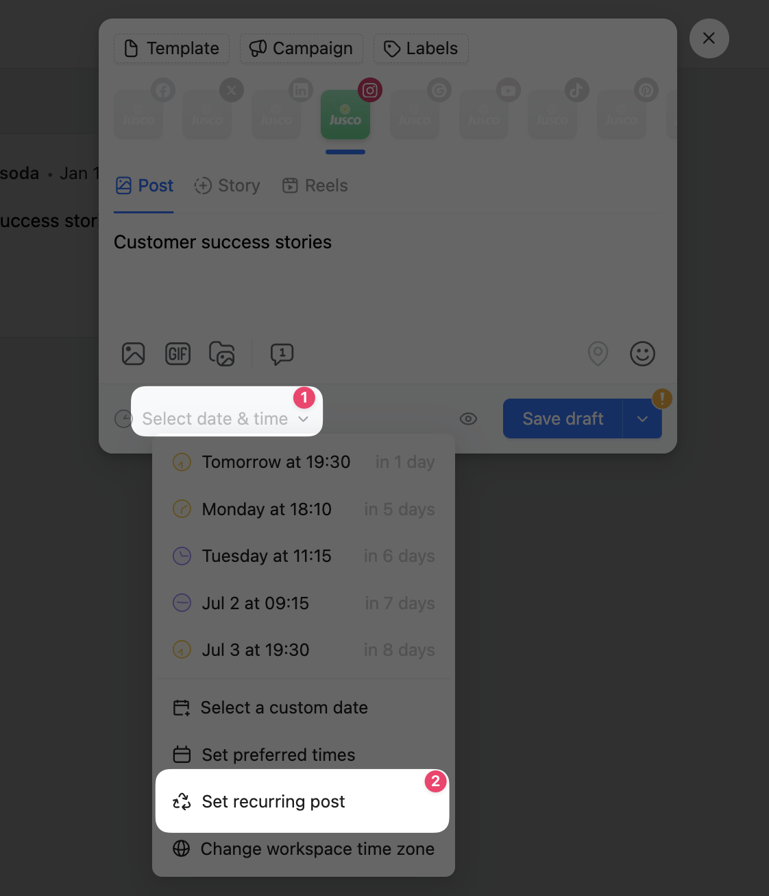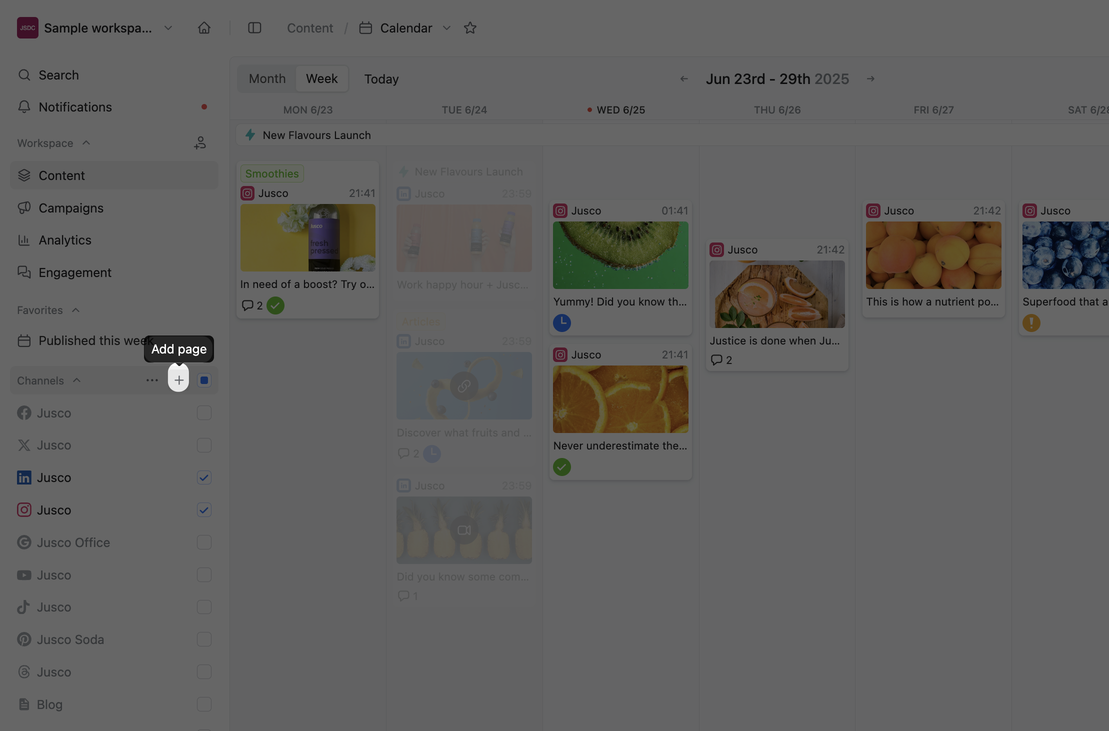 You can also create campaigns to serve as placeholders for events, product launches, or specific time periods in your calendar. This helps you block out important dates and organize related content around key moments in your schedule.