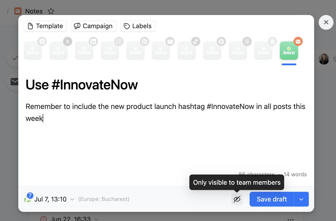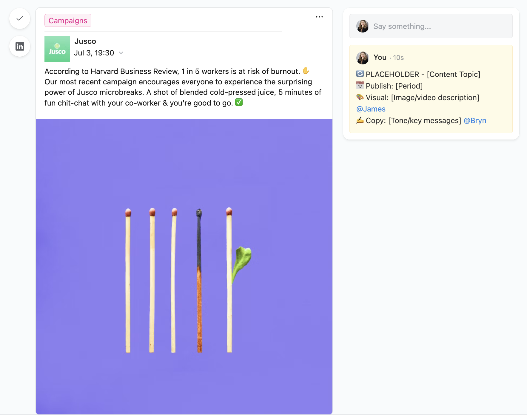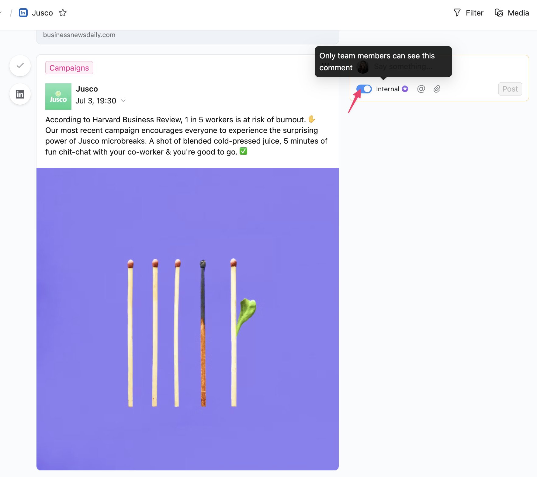 Best for: Adding context, feedback or quick reminders to existing scheduled posts.