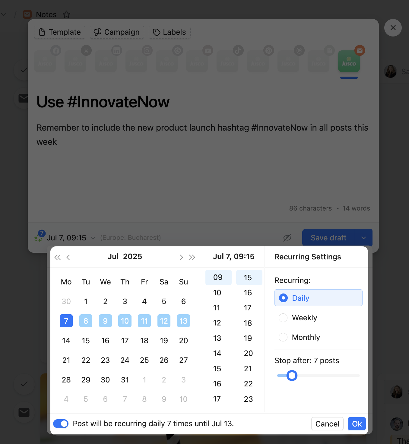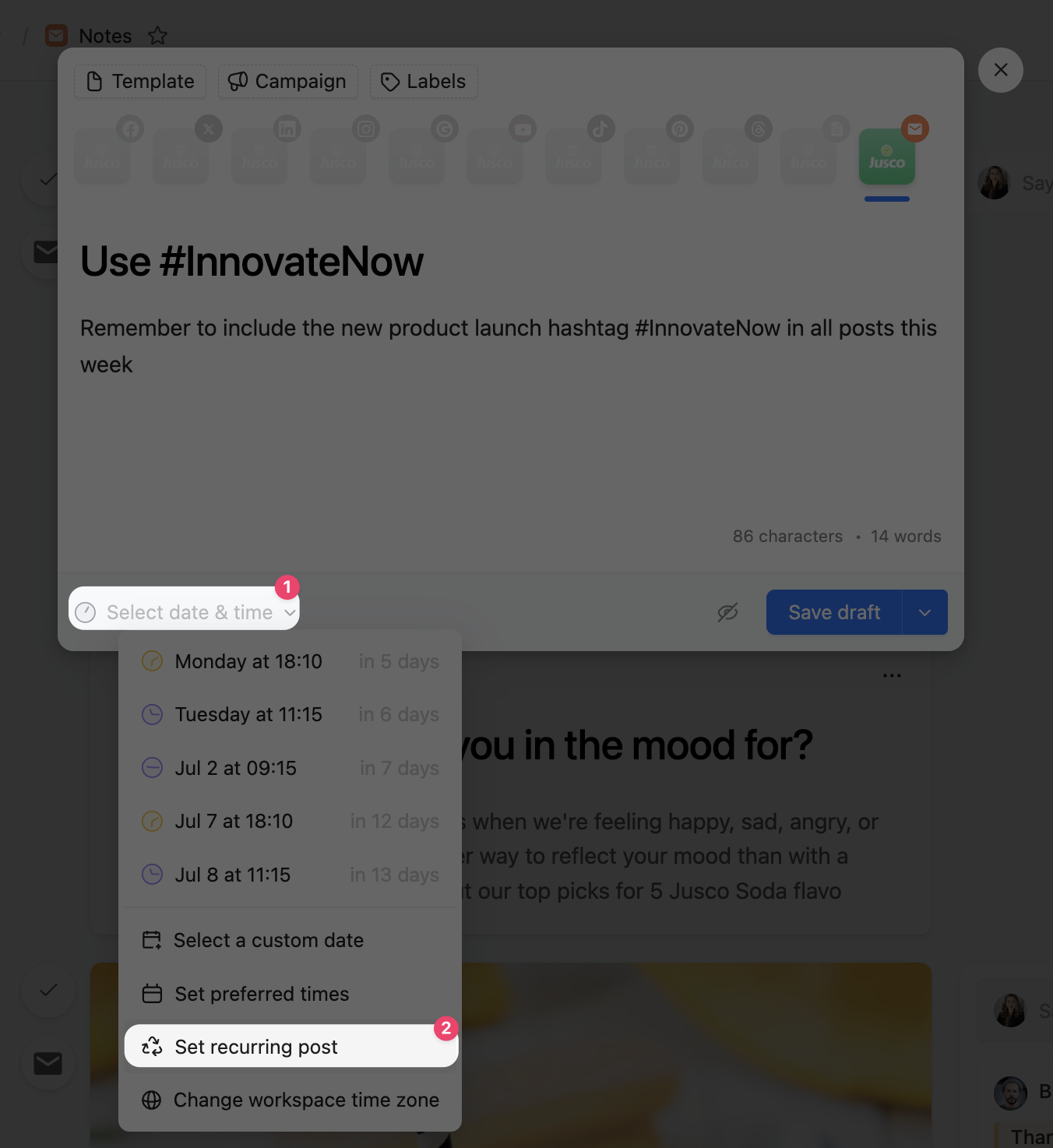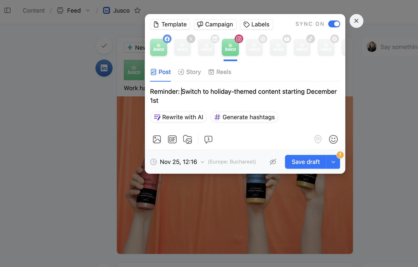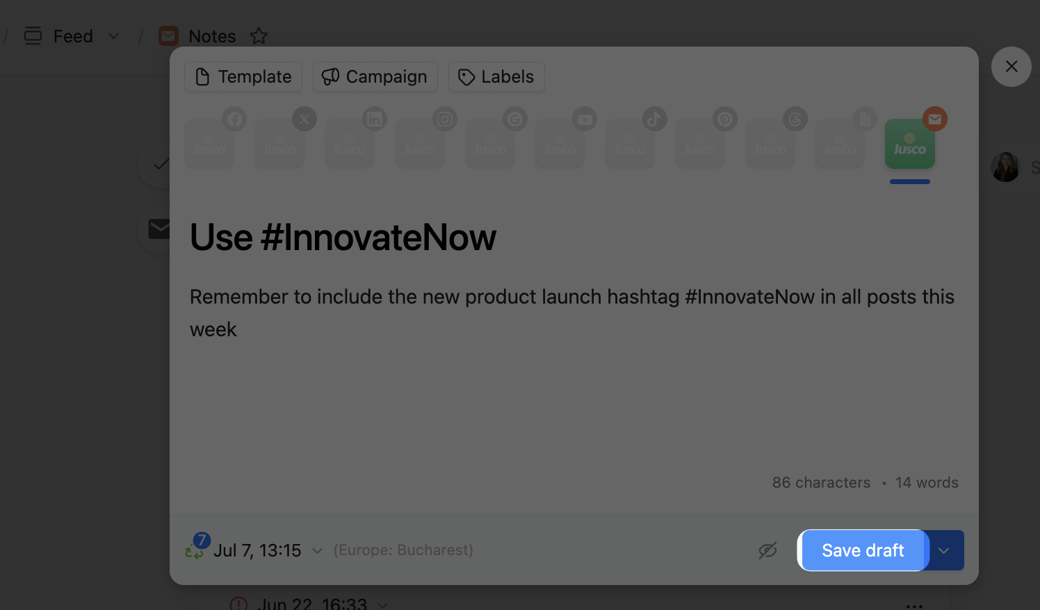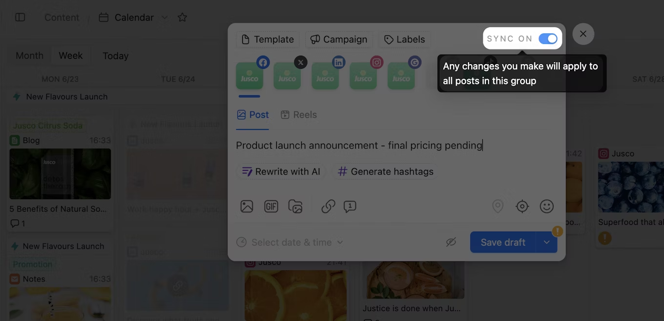 If the note/placeholder applies to multiple social media channels, you can use the sync feature to share it across platforms.