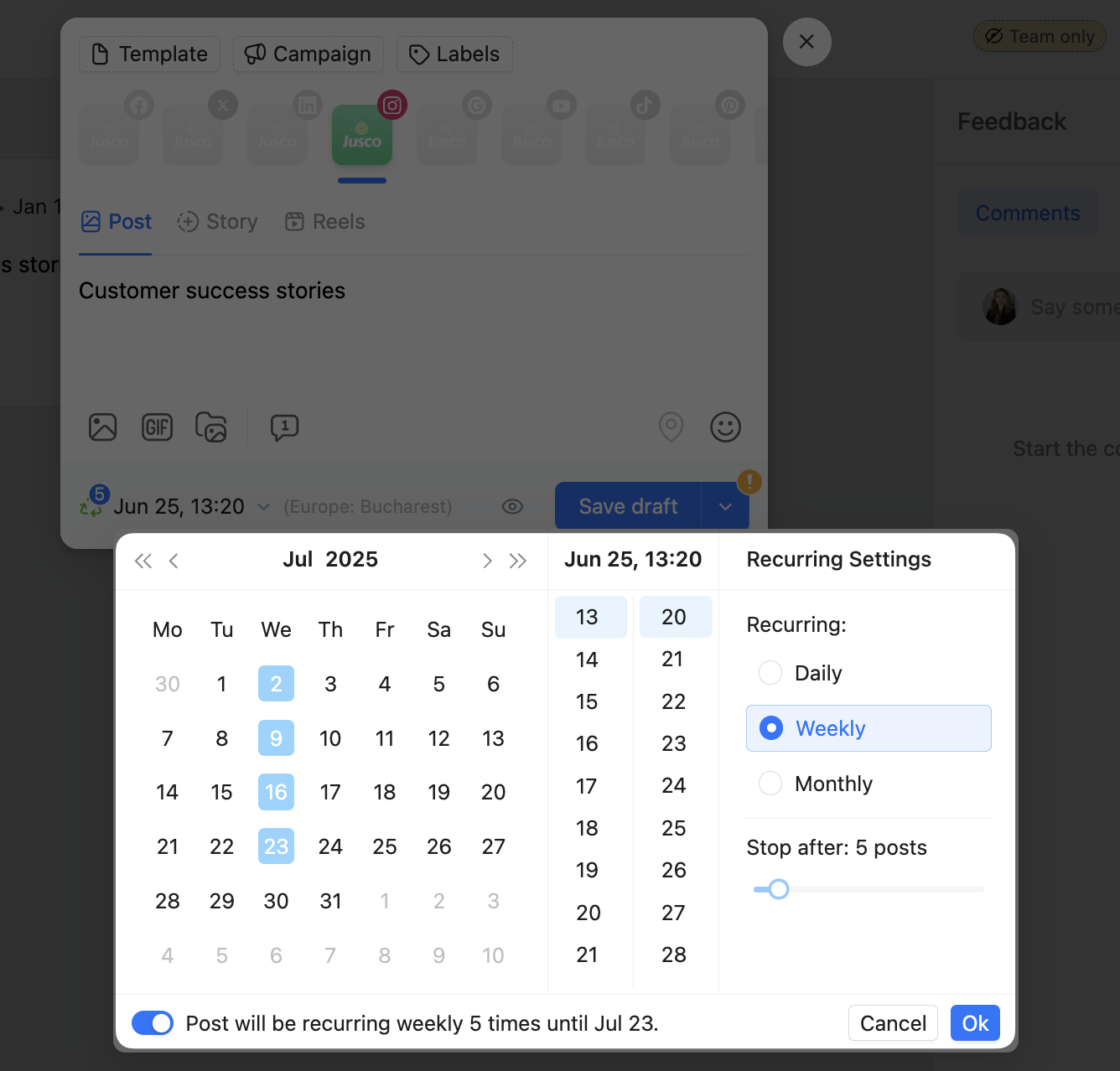 These three methods give you the flexibility to organize your content workflow exactly how your team needs it. Start with internal comments for quick notes on existing posts, then explore post drafts and Universal Content for more comprehensive planning.