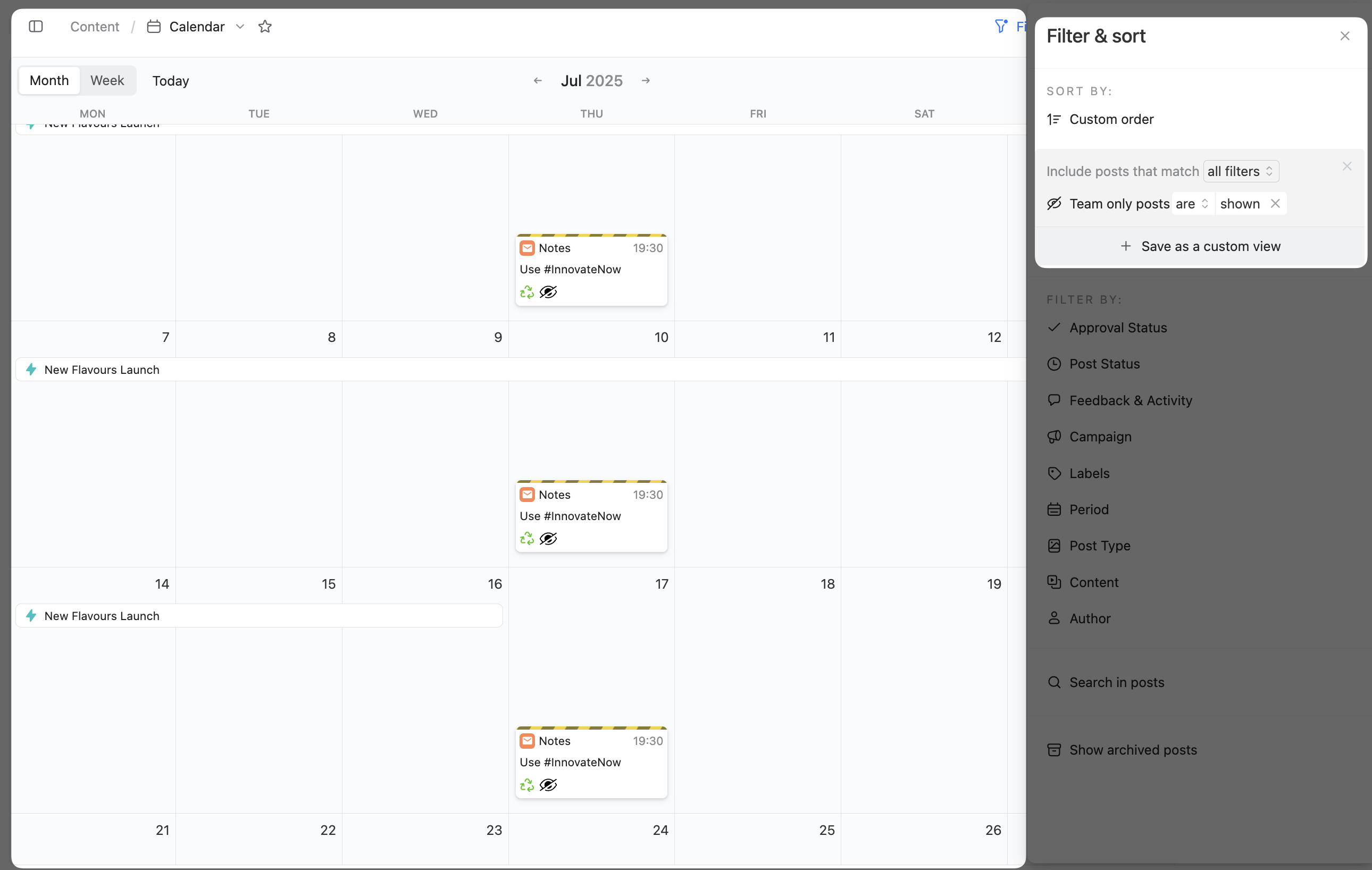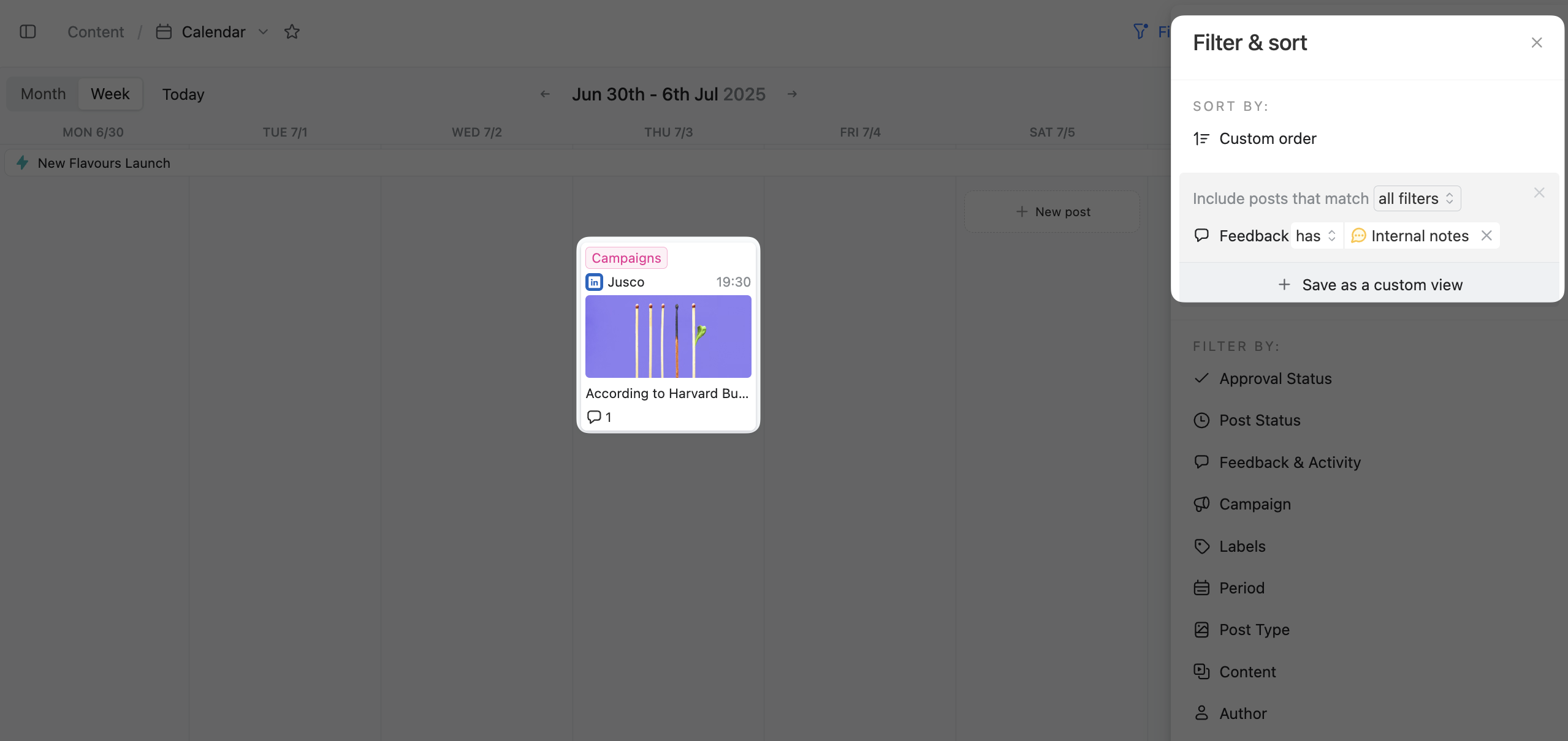 4. You can also filter your Calendar view to show only posts that have internal comments