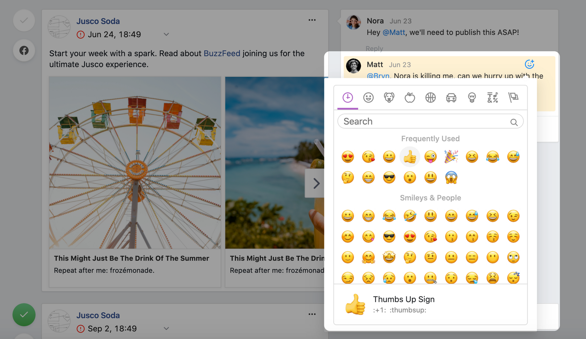 You can easily let your team members or clients know how you feel about their feedback and suggestions with emojis.