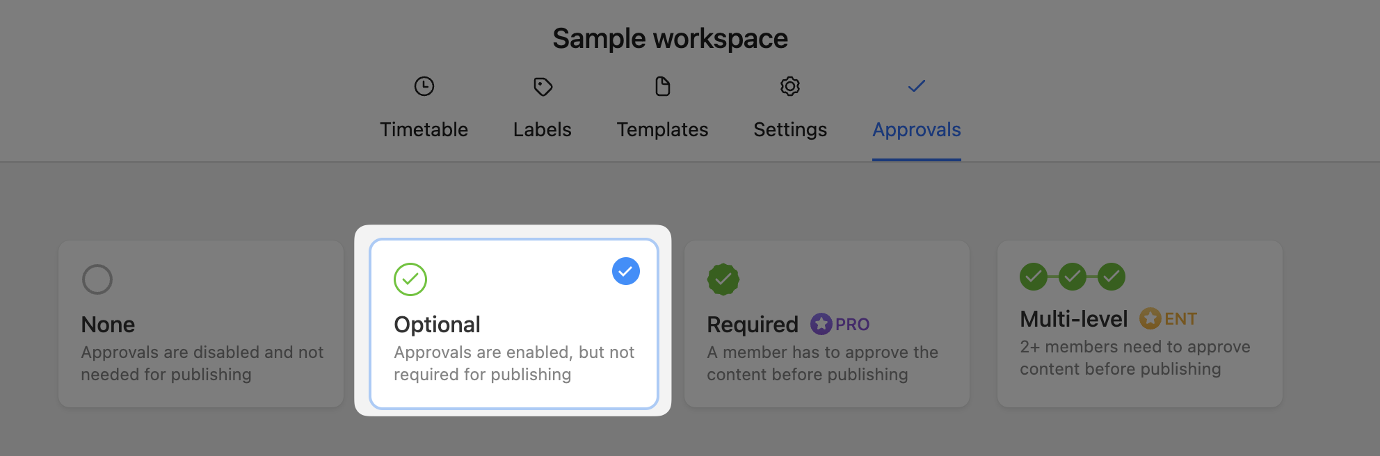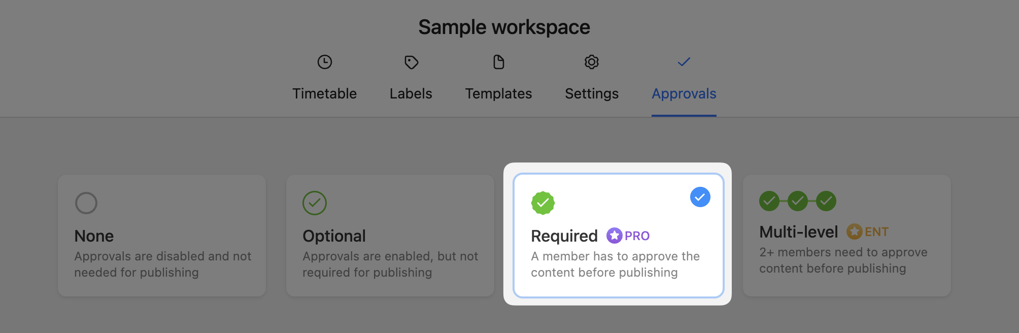 If your workspace is using this workflow, then no post can be scheduled or published without the green light from at least one approver.