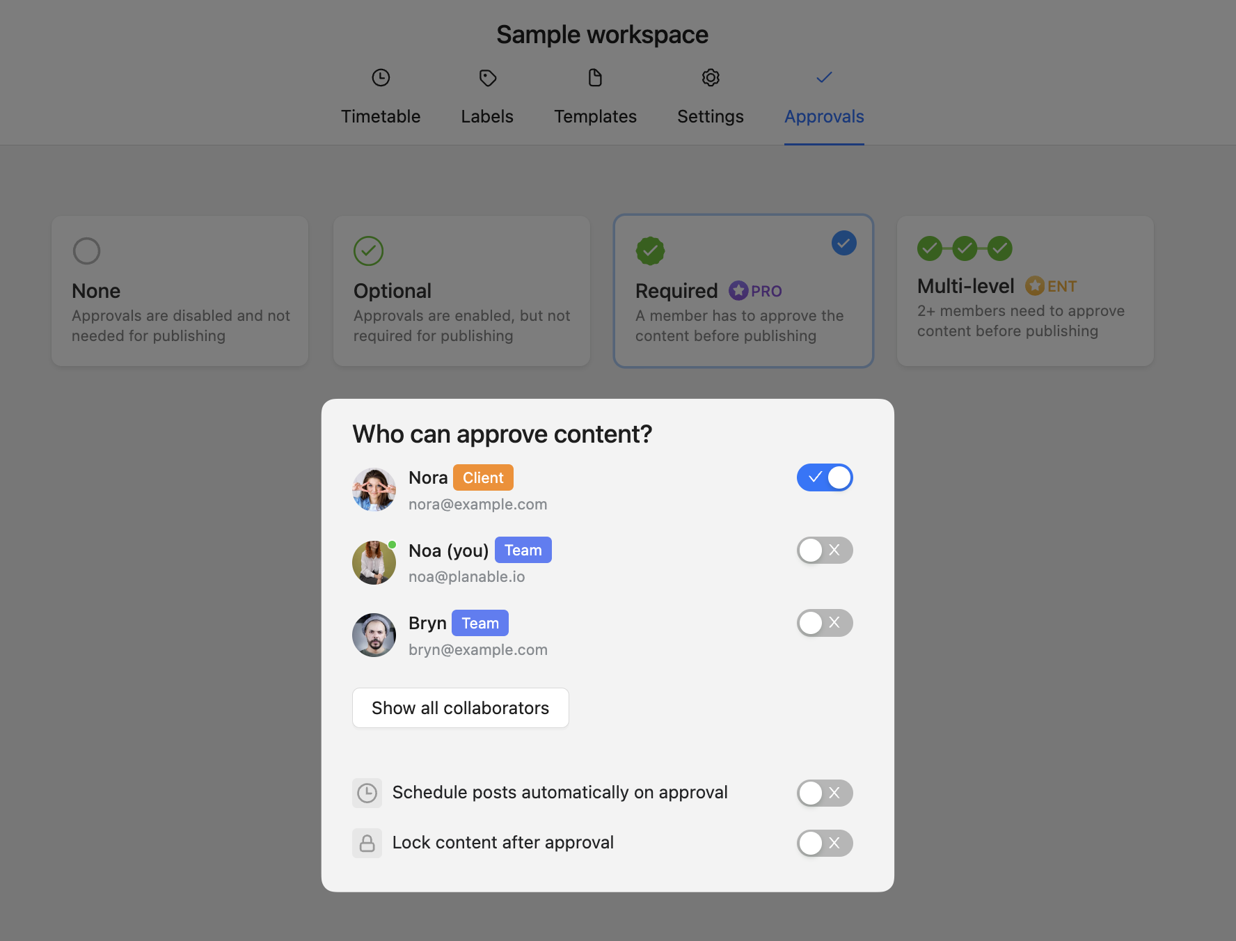 If you've selected an Approval Workflow other than None you will find that in the same Approval Settings there are a couple of tweaks that you can do to further customize the way you collaborate with your team.