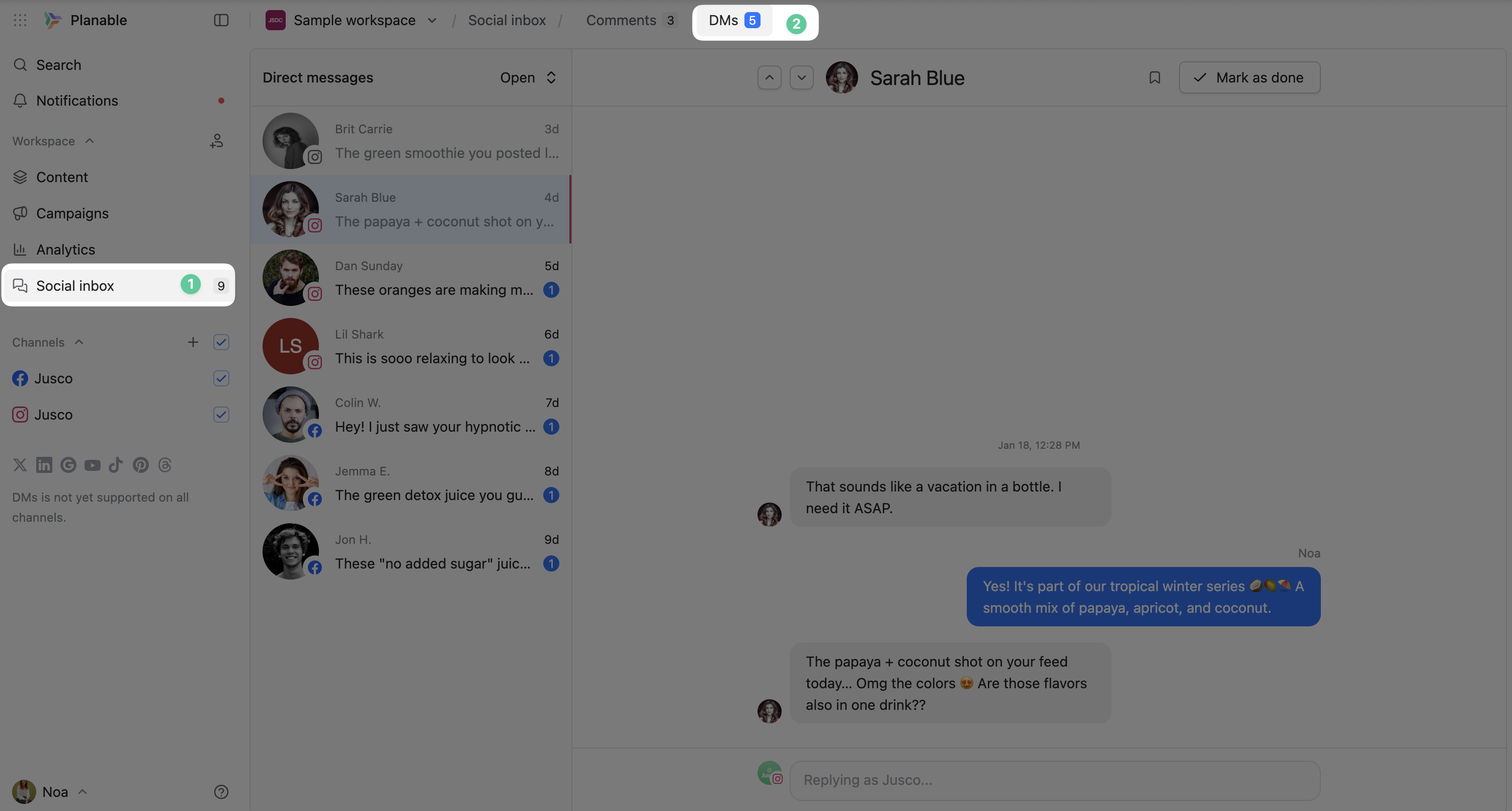 You can now view and manage Instagram and Facebook Direct Messages directly inside Planable.